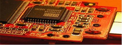 Surface-mount components on a flash drive s circuit board. The small rectangular chips with numbers are resistors, while the unmarked small rectangular chips are capacitors. The visible capacitors and resistors are predominantly a combination of 0805 and 0603 package sizes, while the smallest chip capacitors are 0402 size.